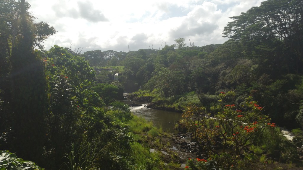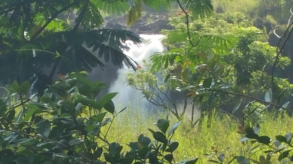 Upstream from Rainbow Falls a few hundred yards, there is a section of the river known as “Boiling Pots”. We got there by driving through a subdivision about a quarter of a mile. There is a small park with a couple of picnic tables, restrooms, and a large green lawn between the parking lot and a viewing area where you can see why they call this “Boiling Pots”. During the rainy season, these pots truly are boiling. Apparently people have died trying to swin here, so they warn you to stay out of the river. It would be quite a hike to get down to the river in the first place, so not many people disregard this advice. But there always are the few.