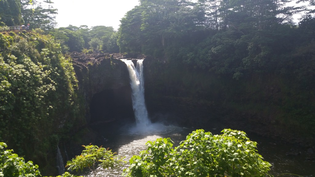 After the helicopter landed at Hilo International Airport, we drove into Hilo and went to visit a few of these waterfalls we had seen from the air. Our first stop was at Rainbow falls, located not to far from downtown Hilo. Legends and stories abound of the expliots of King Kamehameha here, but the falls are truly beautiful to see.