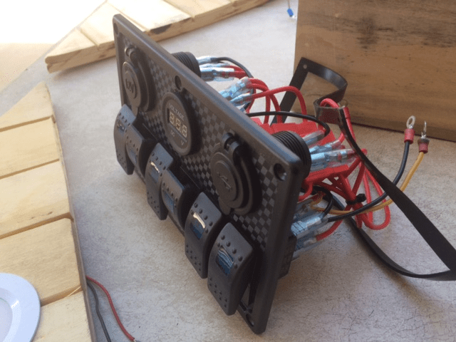 What about switching? I went online and found some low voltage switches for installation into automotive/boating/travel trailers, etc.. I found one that has six switches, one cigarette lighter type power outlet and two USB ports. It also has a voltmeter that tells the current voltage in your battery bank.