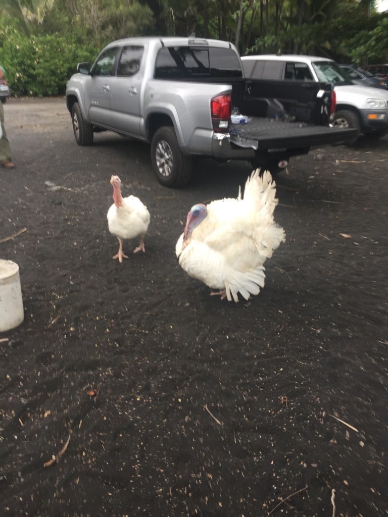 Turtles aren’t the only wildlife here. We also saw a couple of white turkeys strutting around in this parking area.