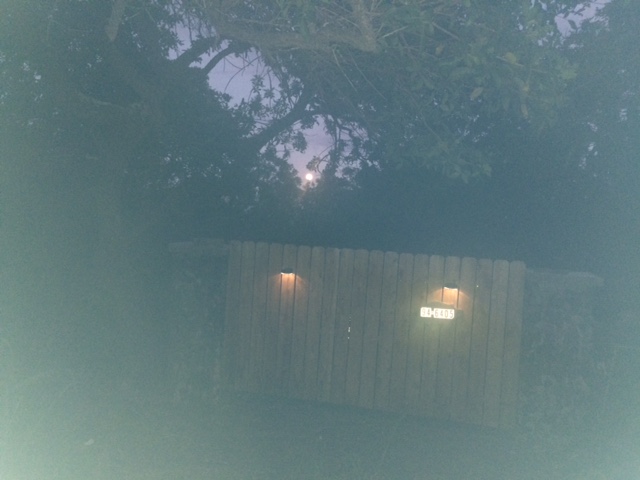 Today, I measured out as well as I could the locations for the footings. I tried to put up strings outlining the edges to make sure it was square, but this is difficult to do alone. Nonetheless, I think I am somewhat close, so I dug the footings for the four corner posts. I installed another solar light on the gate.