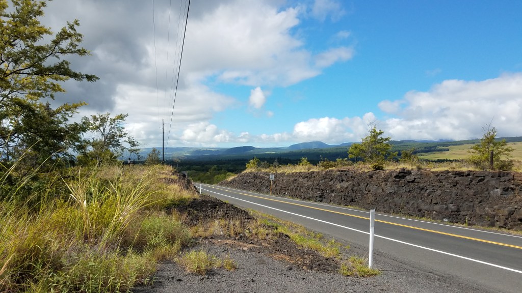 The place I am staying is in the Glenwood subdivision outside Hilo. I drive west on Highway 11 past the turn off to Pahoa, past the towns of Kurtisville and Mountain View. The map I have tells me that I need to turn on Glenwood road. I do not know if there is a traffic light at the intersection, or if this is one of the many minor roads leading off from the highway. It was dark when I was finished at Home Depot, so I am driving along Highway 11 in the dark with no streetlights, trying to find the names of streets that may or may not be well marked. I come to a well-lighted intersection with a traffic signal. Kulani Road. South Kulani Road to the left (Makai – towards the ocean), and North Kulani Road to the right (Mauka – towards the mountain) A few miles past this intersection is a small mini-market on the right side of the road, and just past this is a sign indicating that I am approaching an intersection with Glenwood Road. Just past the turn for Glenwood Road is a mile marker for mile 20.