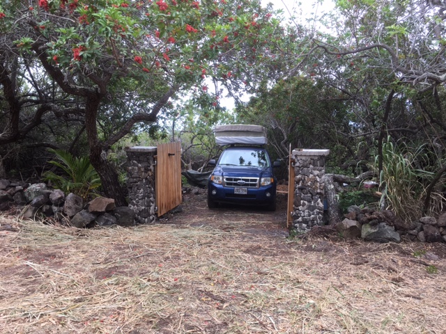 Then, about 10:30, I headed off to Volcano. I still had the lumber for the gate tied to the roof of the car and would use this as a platform for holding the bed. I made sure I had lots of rope.