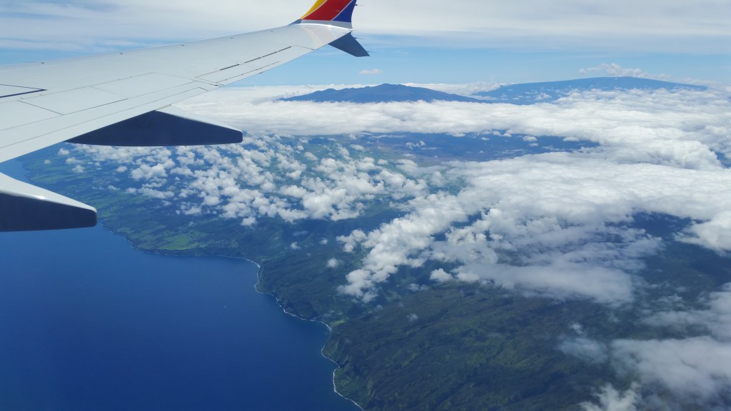 As we flew out and away from the island, we were able to get a good view of the two major volcanos – Mauna Kea and Mauna Loa – both with snow on their peaks.