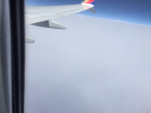 then there are a few small spots where I can peek through and see the ocean. 3 hours after leaving San Diego, we are totally engulfed in clouds. We had been flying directly over a solid cloud cover, kind of like skipping over the clouds, for the last 10 or 15 minutes.