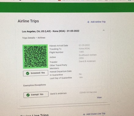 The passenger in the seats across the aisle did not have a pre-clearance bracelet. She told me that she was not vaccinated, had not been tested, and did not register on the Safe Travels Hawaii website. Yikes! The State of Hawaii is going to freak out when she arrives. She planned on just quarantining for 5 days at her home. She was out at the baggage carousel before I was. They had her sign a form agreeing to quarantine and she was free to go. That was it!