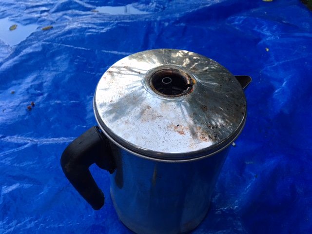 I turned everything off. When it had cooled, I scrubbed the inside to get the burned coffee smell out. That night, when I made coffee in the coffee pot, it seemed none the worse for wear. The rest of the day was spent hauling branches either up to the road or up to the chipper.