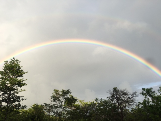 As I watched it, the colors became darker and more pronounced. Then I noticed a faint outline of a second rainbow above the darker one.