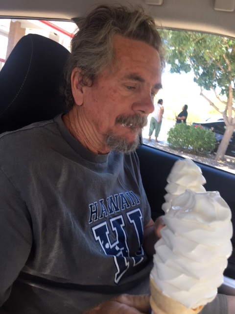While waiting in line at the drive thru, we decided that we didn’t really want a cup of ice cream, so we drove away without paying, and without the sundaes. A mile away, we saw a QT convenience store. They serve soft serve ice cream cones. We stopped there and got two cones with three times the amount of ice cream we would have gotten at McDonalds – and only 79 cents each! Capitalism in its finest hour!