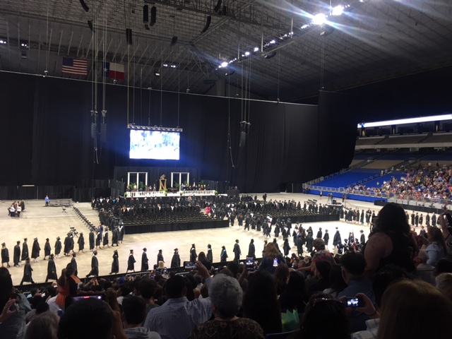 After everyone got their diploma, they tossed their caps in the air, and left. Outside the Alamo Dome, everyone congregated in a mass of humanity.