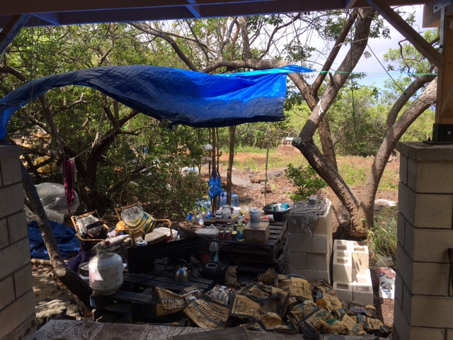 Everything is pretty much the same as I left it. The tarps over the kitchen area seem to be a bit lower. I’ll need to work on raising them up and tightening them.