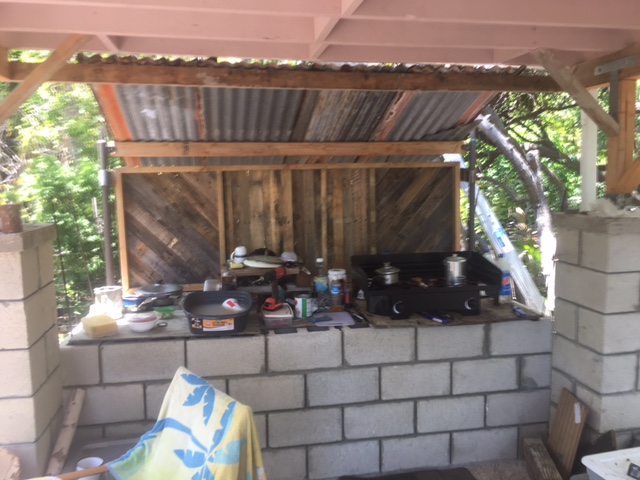 One day, the wind picked up and tore up the big old tarp I had hung up over the kitchen area. I guess it is time to move the kitchen up to the gazebo.