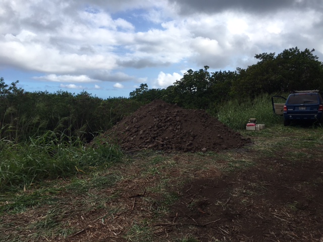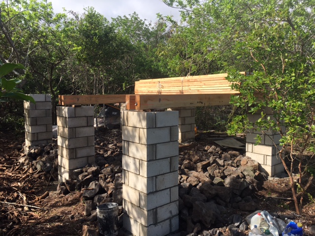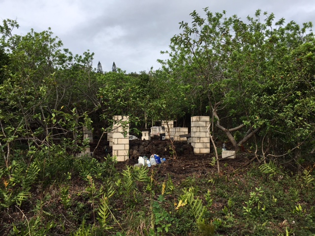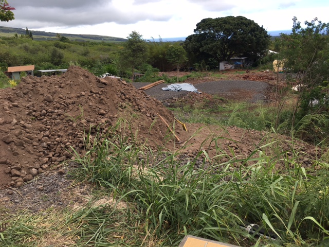 This trip saw progress on clearing the front portion of the Ahi lot, a completed driveway at Ahi as well as the columns for the structure. I must return to the mainland until February.