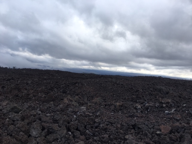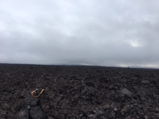 The weather did not cooperate and the low clouds hid most of the lava activity, but we did see off in the distance about 2 miles away from the highway, a few flashes of red as the lava burst forth from the leading edge of the flows as they spread across the flats of the saddle area.