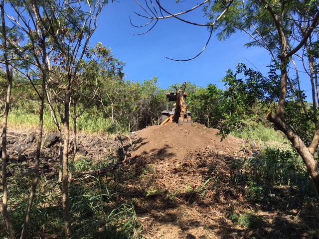 The work on extending the driveway to the bottom of the hill continued as well as work on building the columns for the new structure at Ahi.