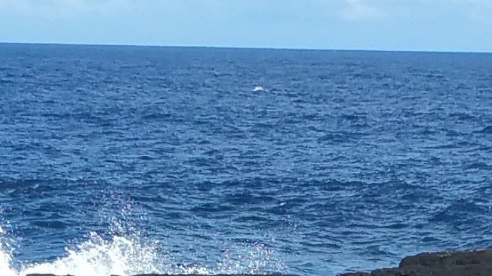 After lunch, we went down to the pools again. Then we washed off with the bottles of fresh water we had brought. I placed them on the lava when we arrived and they warmed up. As we were preparing to leave, we saw a whale spout about 100 yards off shore.