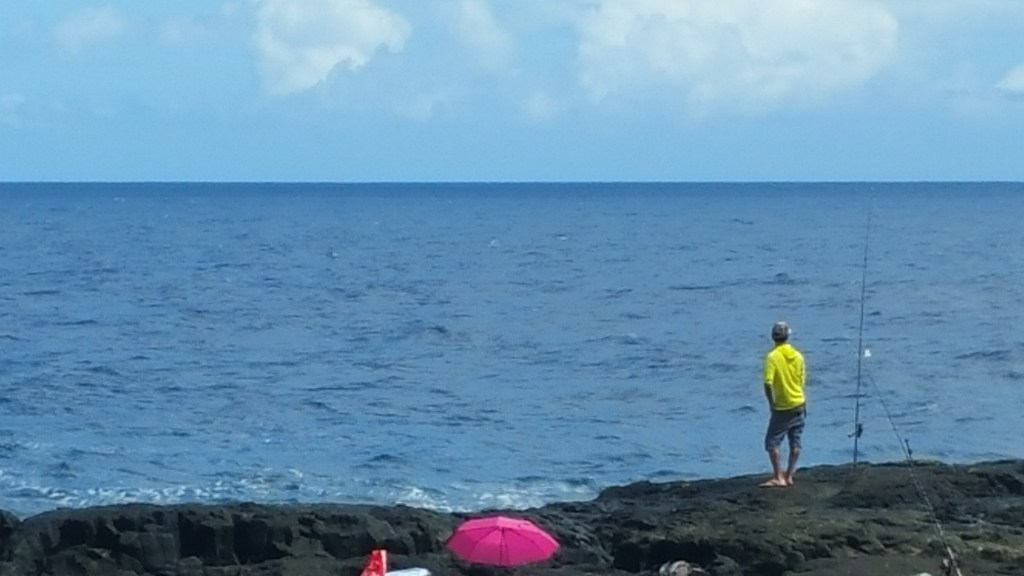 Then we went back out to the ocean at Honu’apo. There was a fisherman there fishing off the point near the two wading pools. We still went down and relaxed in the water of the pools.