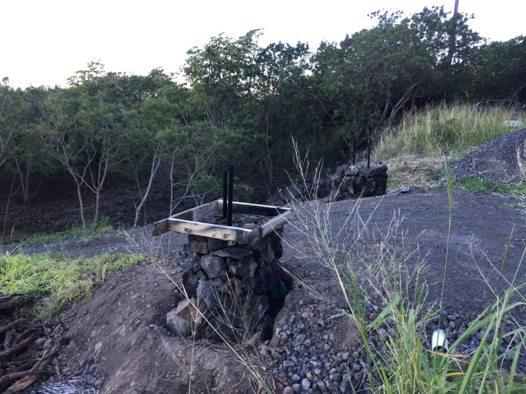 During the past week, I have dug footings at the top of the driveway at the Ahi lot for “gateposts” – one on each side of the driveway.
