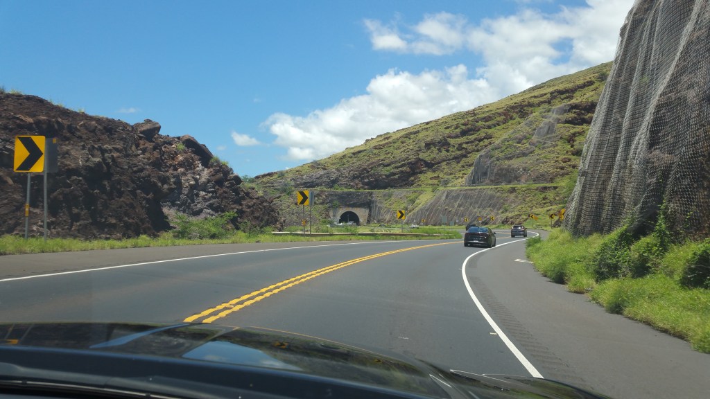 Past Ma’alaea, we came to a tunnel – the only highway tunnel, on Maui – that bores through the mountainside for a few hundred feet.