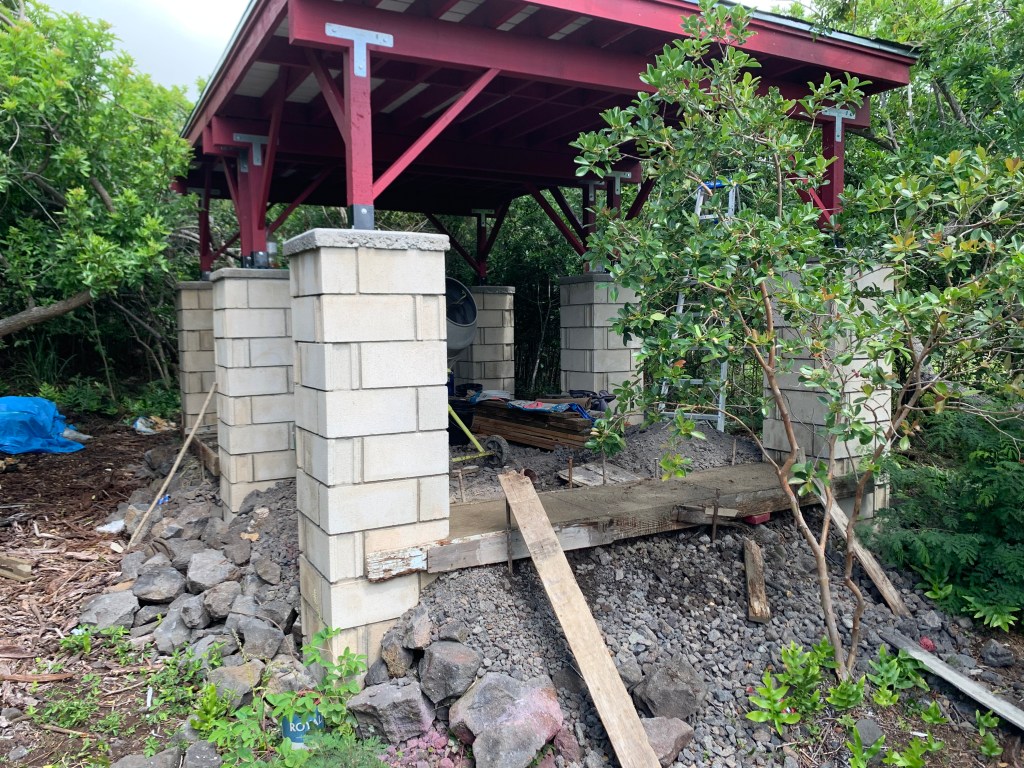 Set up the forms between two of the gazebo columns at Ahi for another concrete pour.