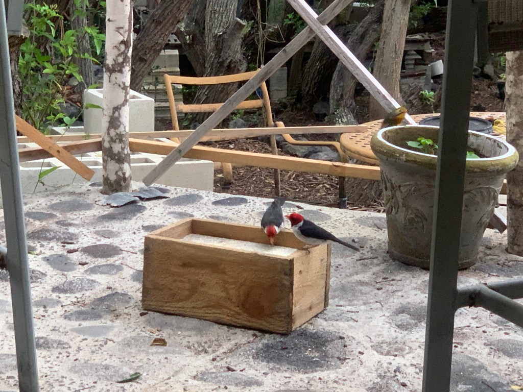 After spending a few days on Maui, I did not see my bird friends I call Bert and Ernie for a few days. They have returned to coming to the feeder.