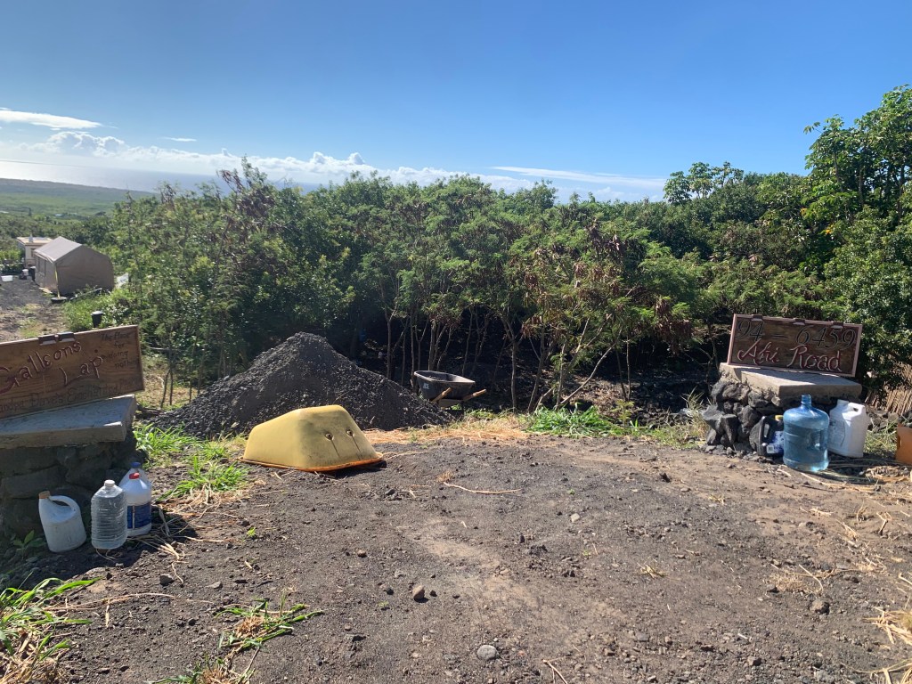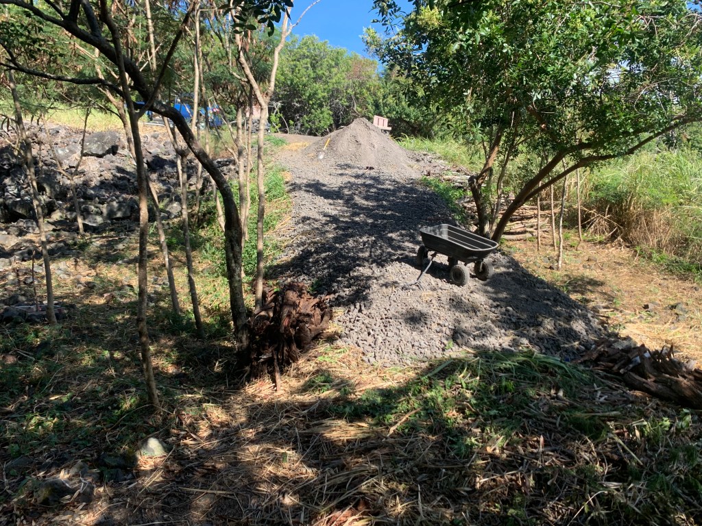 Worked at Ahi all morning moving gravel. Concentrated on the Hilo side to create a pathway to walk down the driveway. Then went back to working on the Kona side