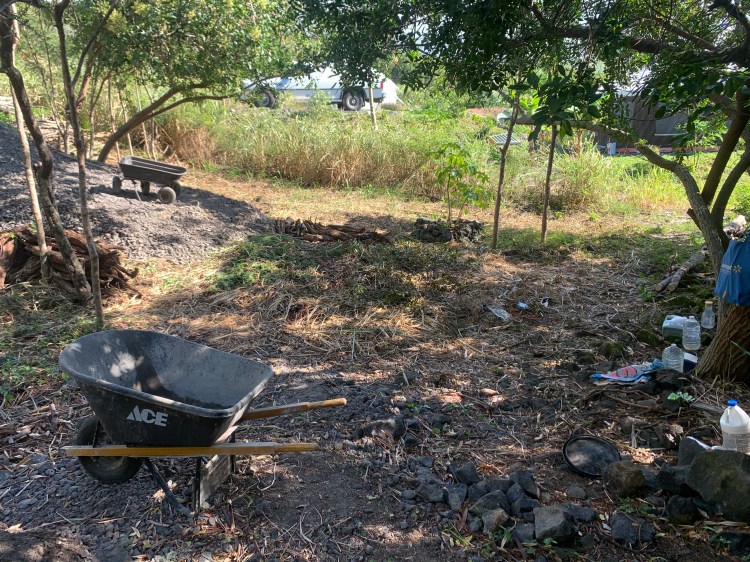 Worked on clearing more of the large debris pile at the bottom end of the lot. Dug out the larger logs and carried them up to the pile on the side of the driveway Put the smaller ones on the pile at the bottom of the driveway where I call the “parking spot”.