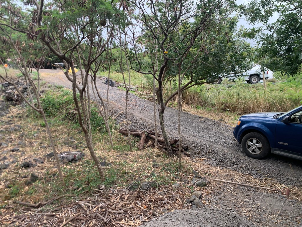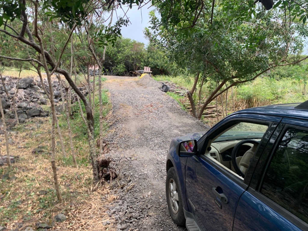 Went over to Ahi and moved more gravel. Driveway is graveled all the way to the back of the “parking area” at the bottom.