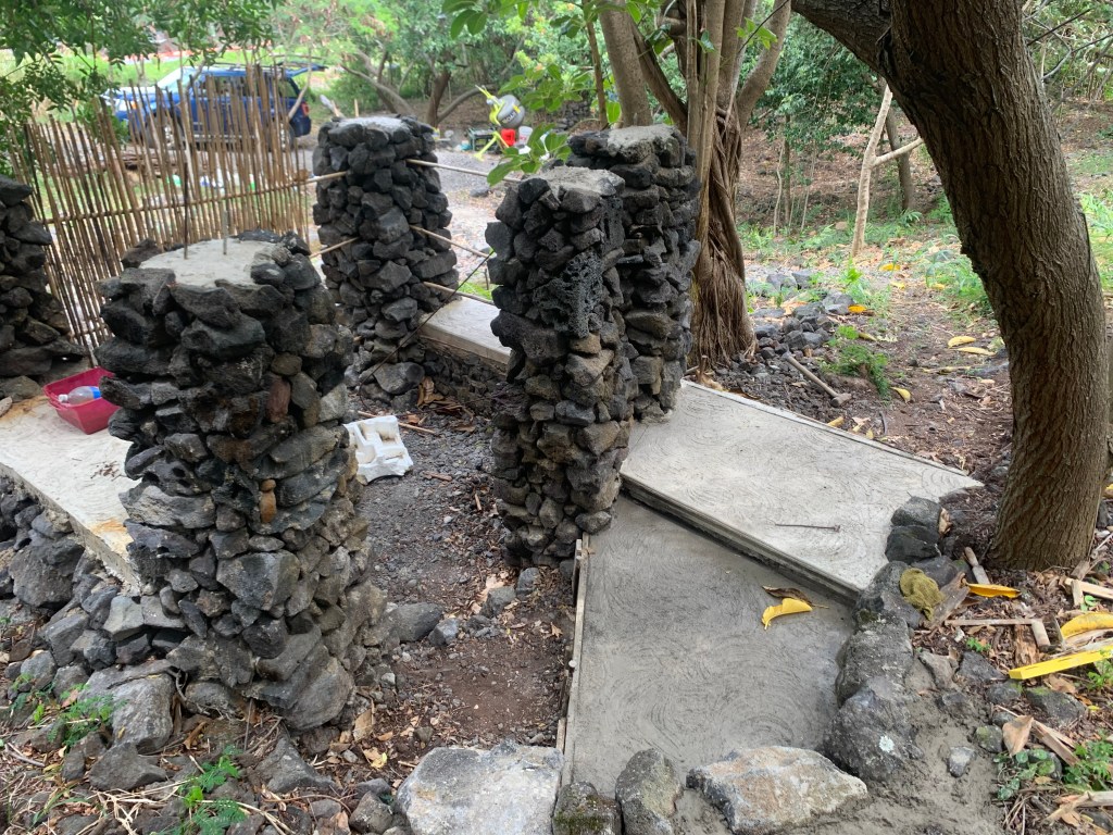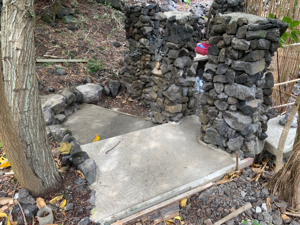 Poured the concrete in the second step at the shower entry at Ahi.