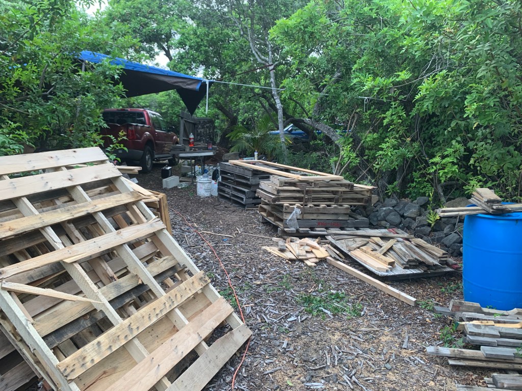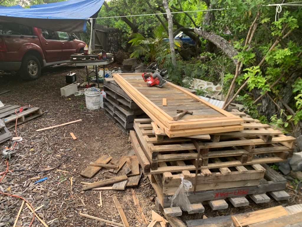 Using some of the pallets as a work bench, I got to work putting them together.