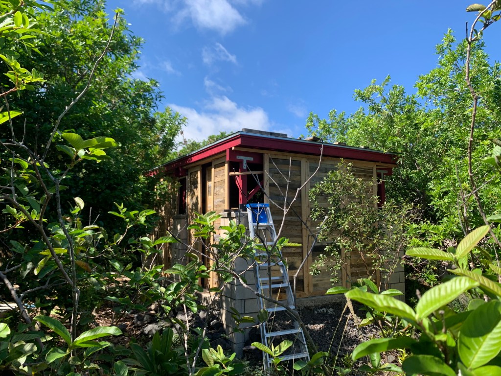 I went to Hilo for more blankets and sheets. I also picked up some tracks and hangers for the doors to slide on. I cleaned and washed two ice chests, and decided that for the four days they were here, we would live out of them and I would get ice every day if necessary.