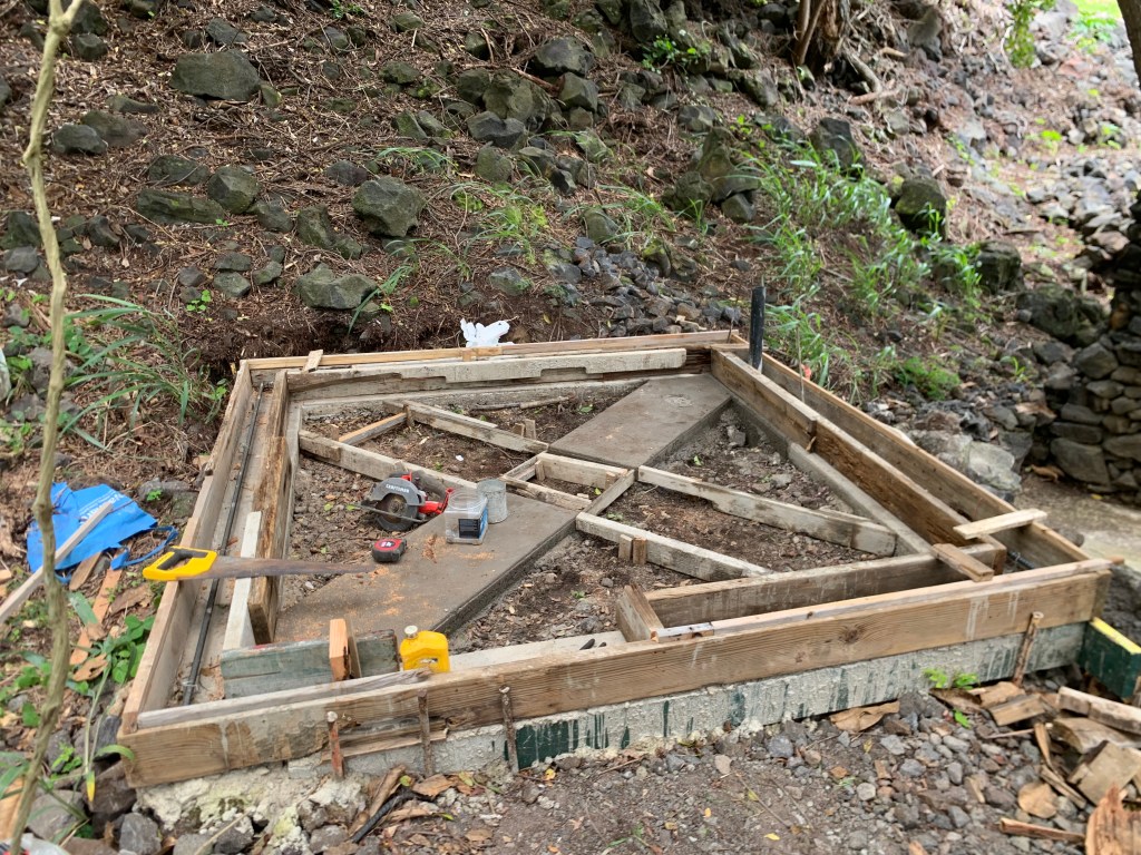 I poured another step at the bottom of my garden steps. Continuing to make life a bit easier – less stumbling around in the dark!