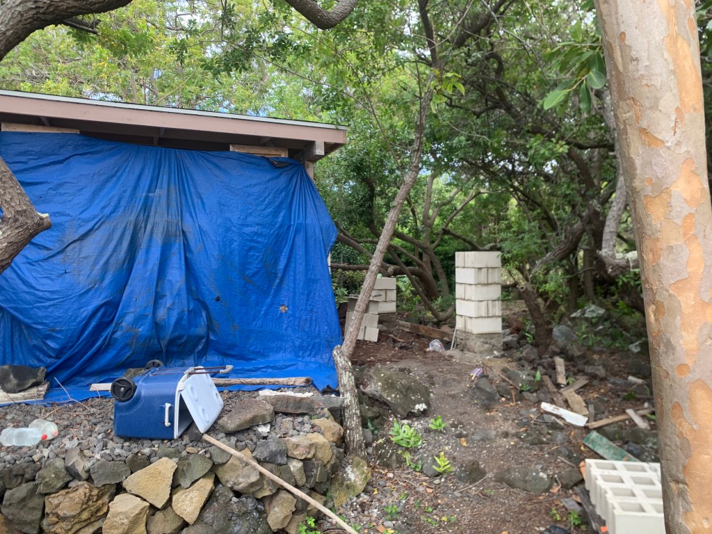 I went to the hardware store in OceanView and picked up a piece of PVC pipe to connect my drain lines to the septic system at Holowai.