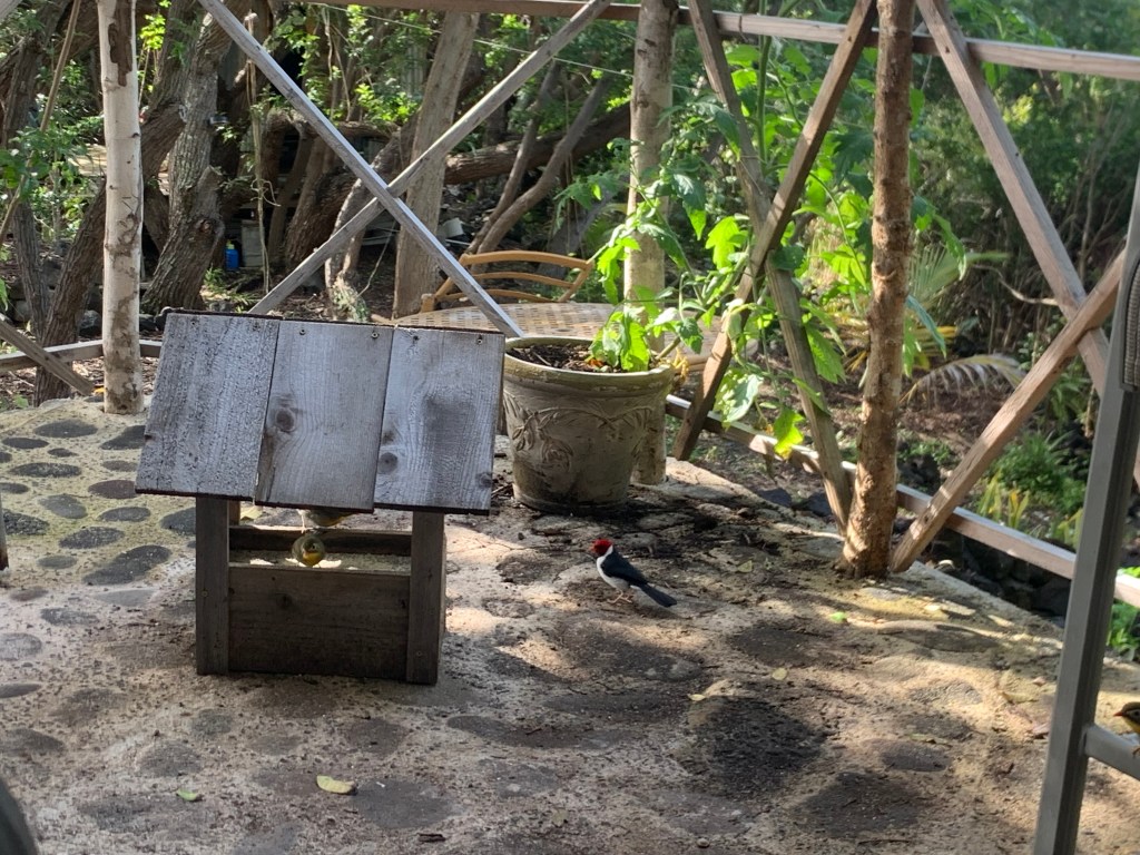 The birds keep coming by for a snack. The honeycreepers seem to be ruling the roost while the redheaded cardinals wait in the wings.