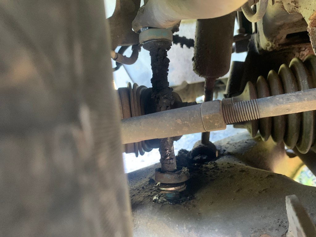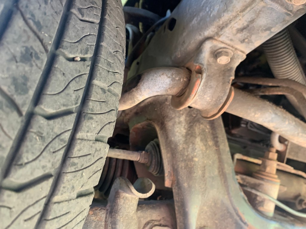 As I drive down the dirt roads, there is a “clunk” coming from the front suspension of the truck. Something is loose under there.