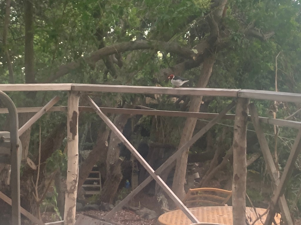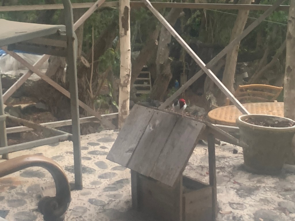 I apologized profusely, and he listened. Then he flew up into the branches of the tree above the lanai where his mate was waiting. I guess he explained the situation to her, because they both flew away.