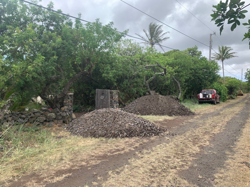 After he had dumped this load, I ordered another load for the Holowai Property. This arrived about 45 minutes later, and I had him dump it in two piles – one on each side of the driveway!