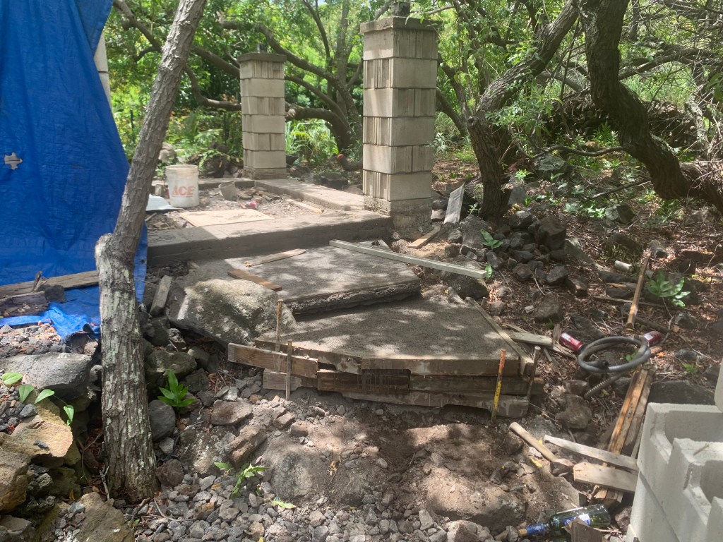 Then I started up the mixer and poured the step. I am using the same method of finishing these steps as I used for the gaeden steps. I use a sponge to suck up the excess water and swirl the sand and cement around the surface. This leaves a “sand” finish that will not be slippery when wet.
