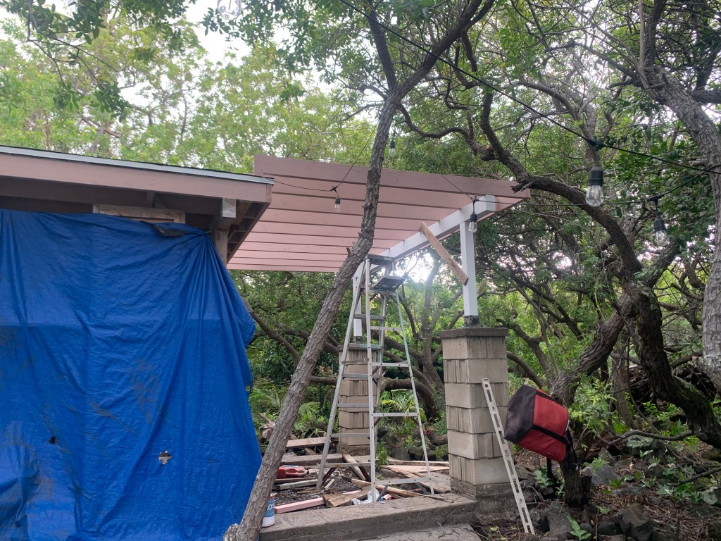 While the deck boards are drying, I installed the rafters/ceiling joist. I have not many long screws left so I ordered more online. They were half the price of what the local hardware charges, And I’ll get them in two days! That really surprises me that they will get here that quick!