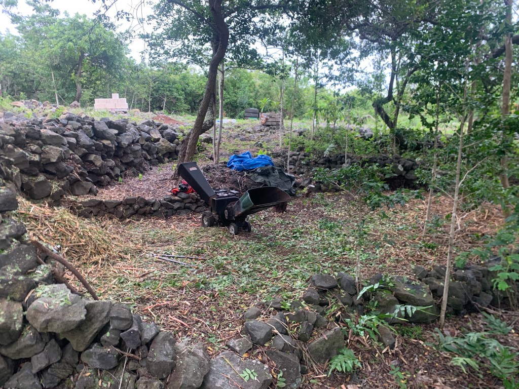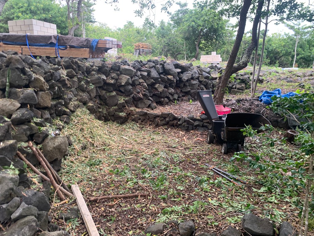 The pile of chipped material is much smaller than the original pile, and I think that if I had a more efficient chipper, one with sharper blades, or a different design, maybe the chipped pieces would be even much smaller