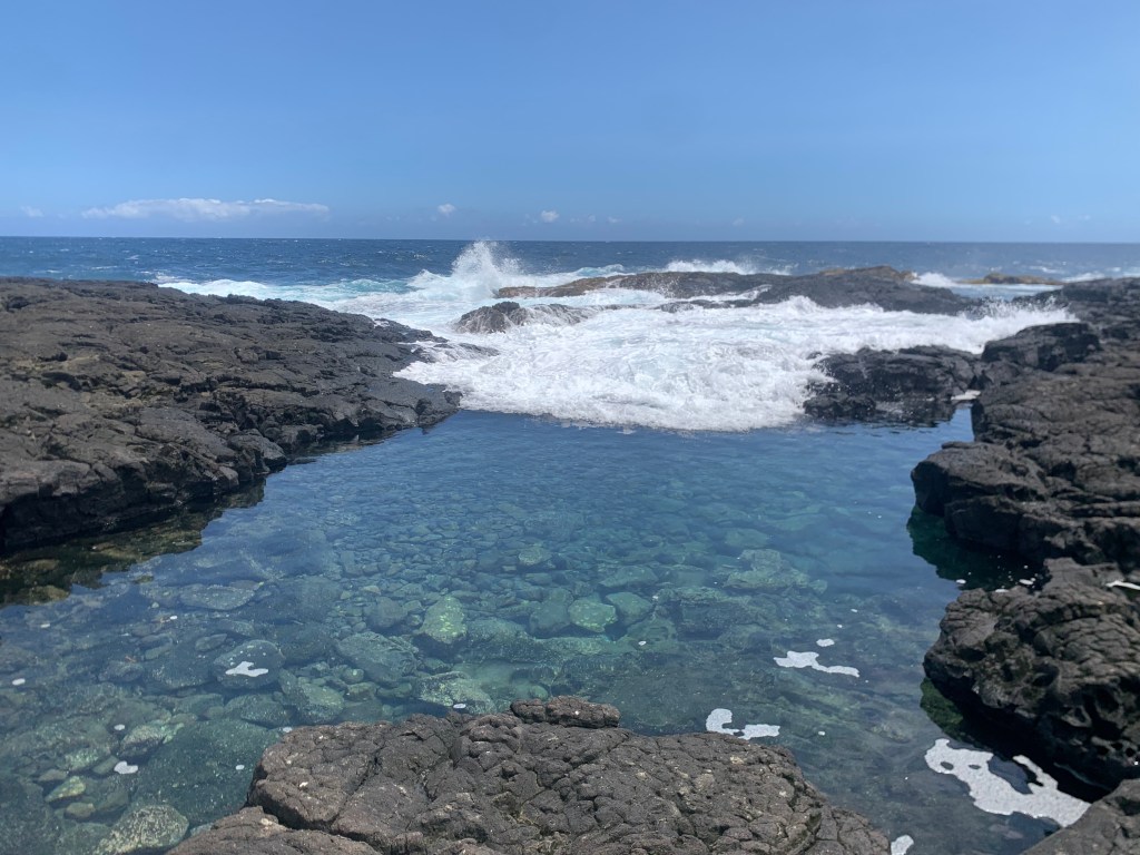 I was even able to capture a good picture of just how the swimming pool keeps getting refilled. I really do not know where the water goes from the pool, but it must seep through the lava back into the ocean somehow, as the level in the swimming pool does fluxtuate! It is kind of a natural filter system!