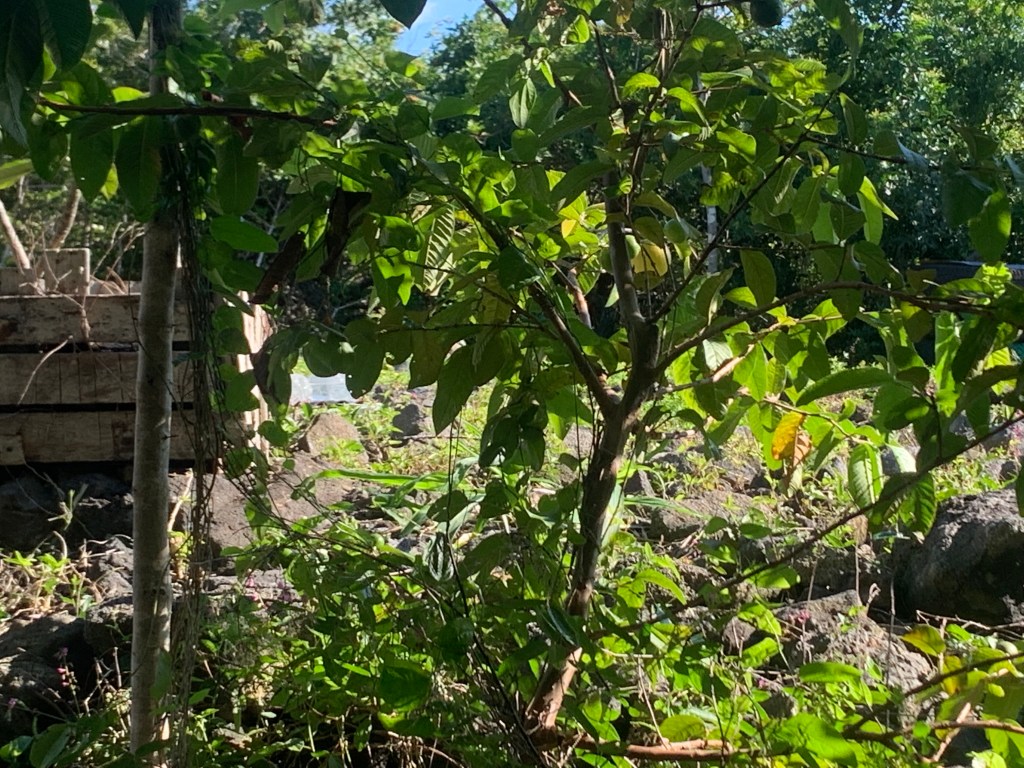 I also saw some guavas on a small plant that I didn’t even realize was a guava, over near where the chipper is at.