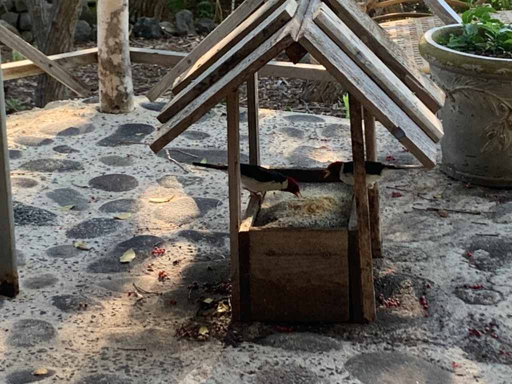 Today, I didn’t get up, and they proceeded to eat at the feeder before flying away.