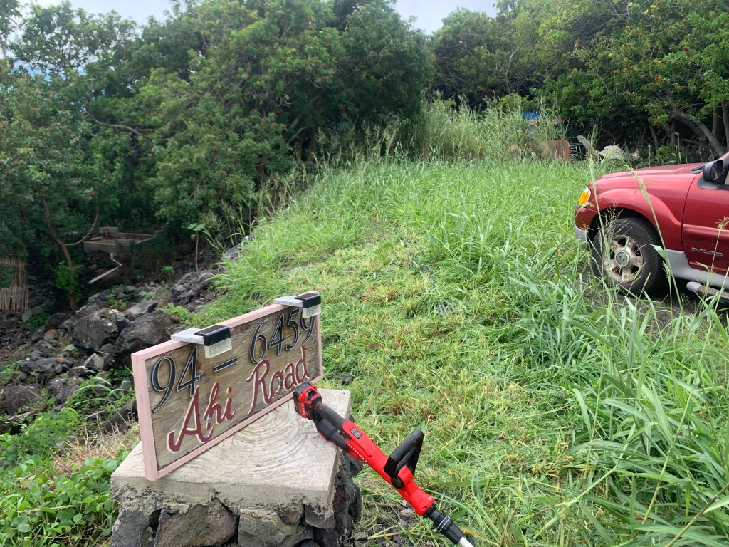 Back at Ahi, I started trimming the grass at the top of the hill at the front of the property.
