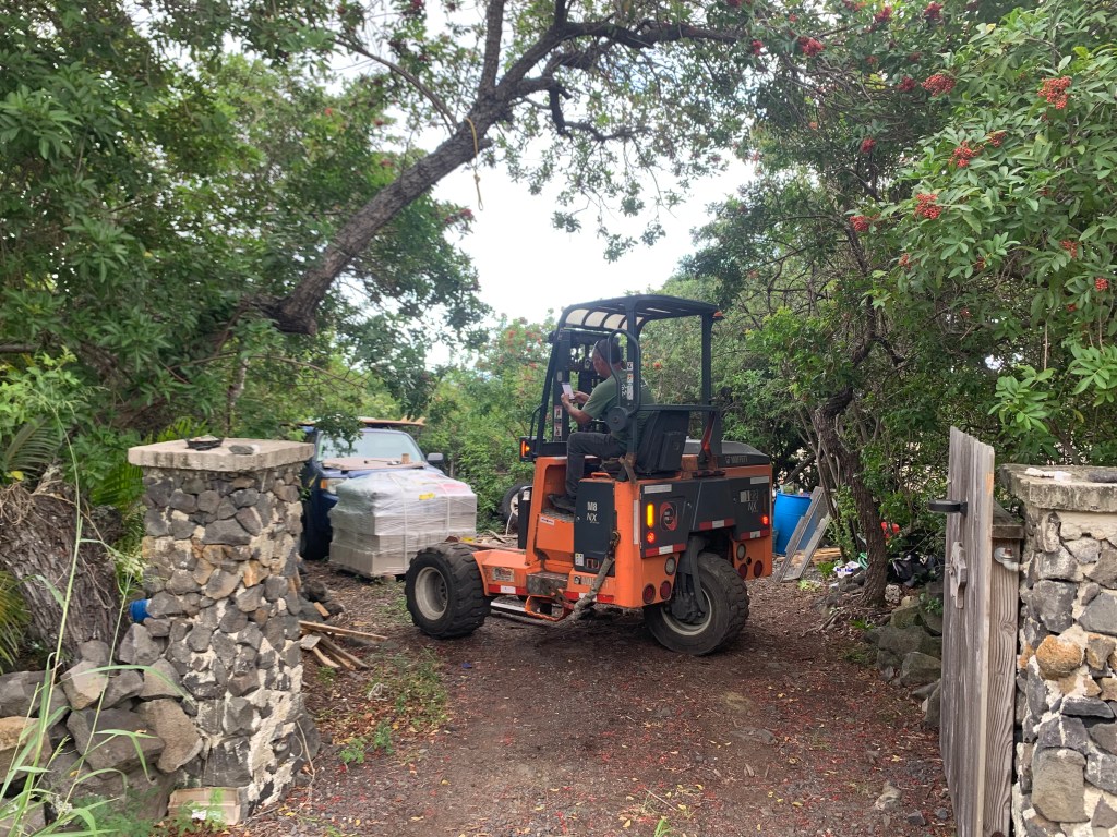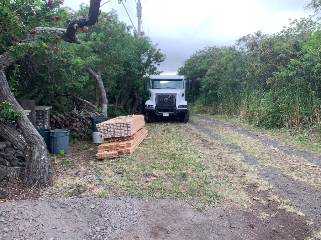 Some of the lumber has been moved off the roadway before it grows legs and walks off.
