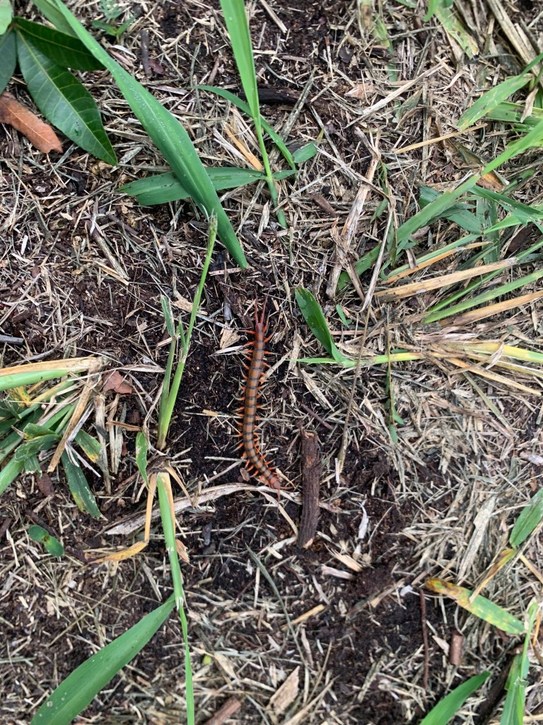While moving the larger boards from the roadway, I made a new friend! Six to eight inches long!
