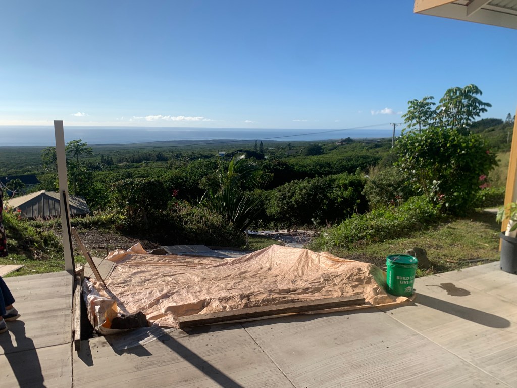 My neighbor asked for help with pouring a driveway to his parent’s house up on the hill. Fabulous view from up here.