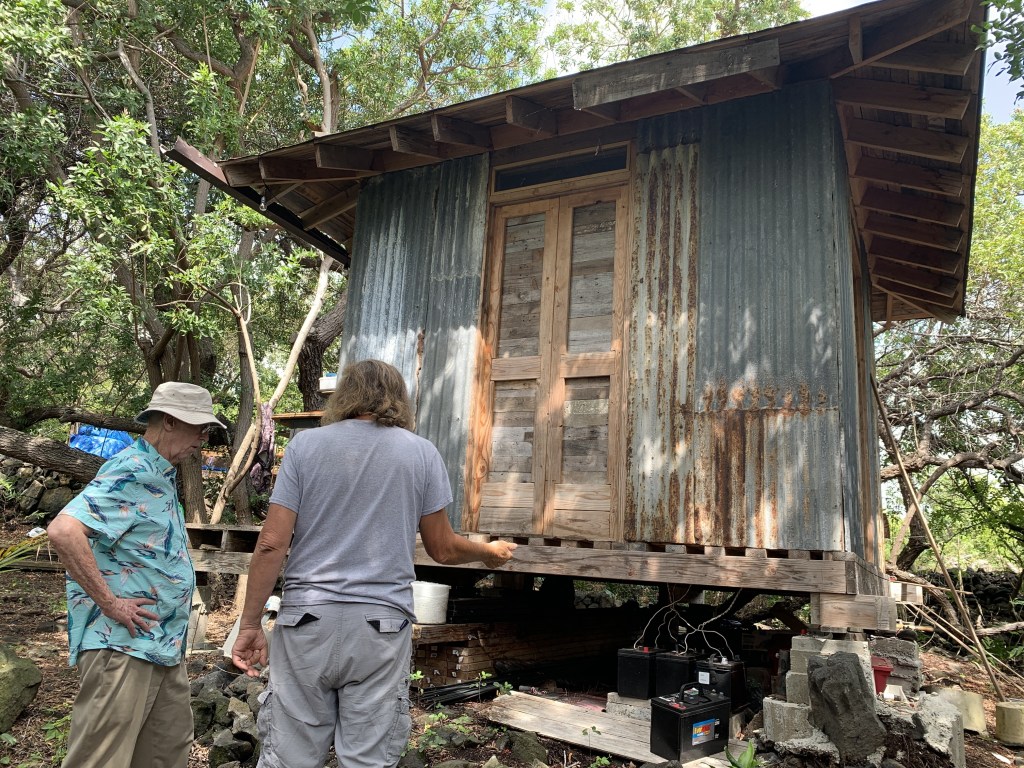 After enjoying a refreshing drink of juice in fancy glass goblets, we were treated to a tour of David’s property as he explained his vision. He has done an incredible job clearing the land for his cinder-block structures. It’s amazing all that he has built- completely by hand! He has no water on the property; he hauls in water from the nearby town of Waiohinu… which is a major job just by itself!