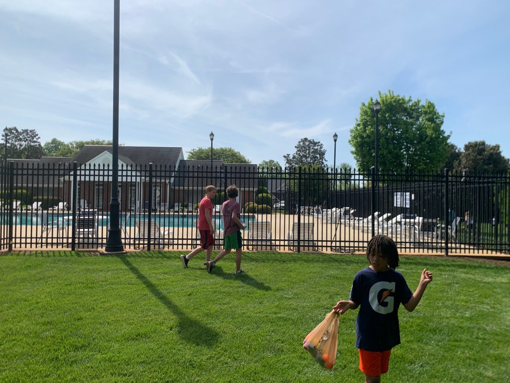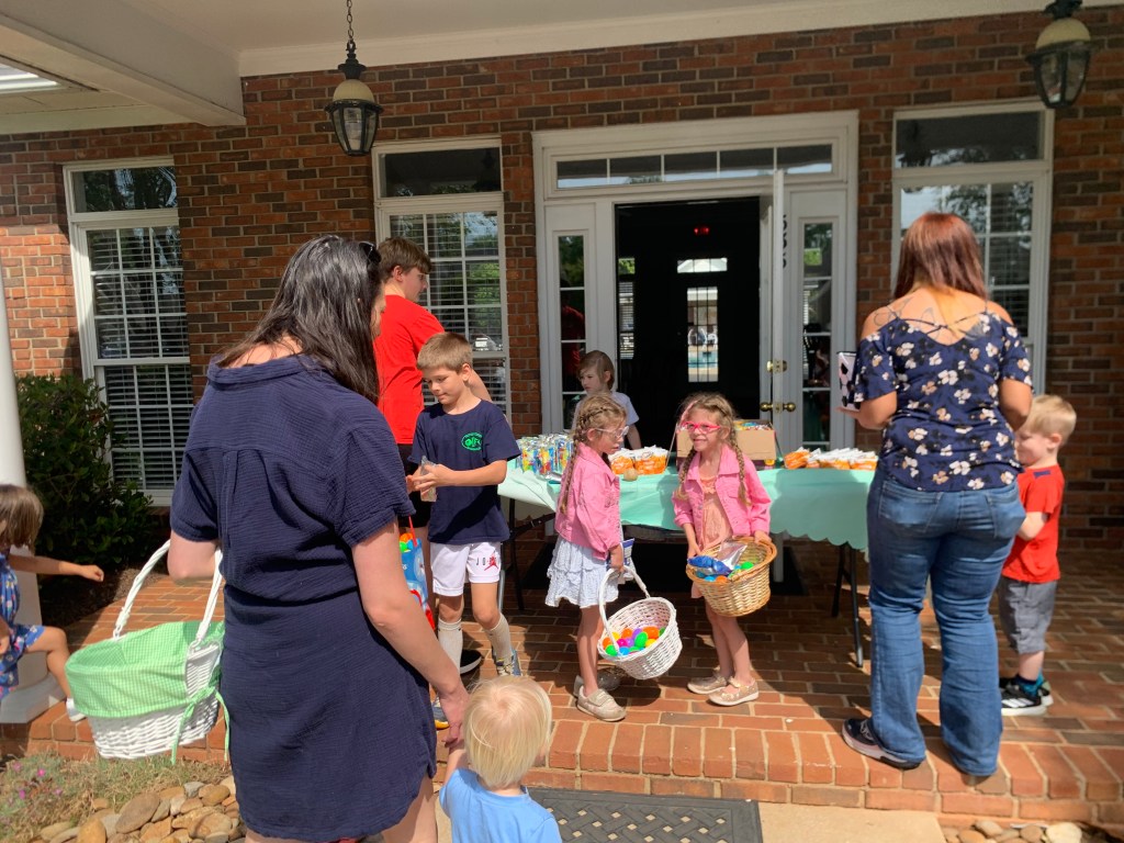The next day, Saturday, they were having a community Easter egg hunt at the HOA clubhouse. All the kids in the neighborhood hunted for plastic eggs on the lawns and gardens at the clubhouse!