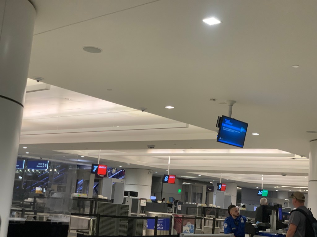 My biggest problem was that my hat had gotten stuck in the conveyor and I didn’t realize it until after I had gone up the escalator. There is no down escalator! I had to find an elevator around the corner and go back down to the second level where the checkpint is located and retrieve my hat.